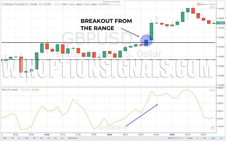 The Momentum indicator in combination with other technical analysis tools can bring relatively large income when trading binary options. At first, this strategy may cause some difficulties. In particular, difficulties usually arise when determining the moment of occurrence of an impulse. But over time, these problems will disappear. However, it is recommended to carry out the first transactions using a minimum deposit.