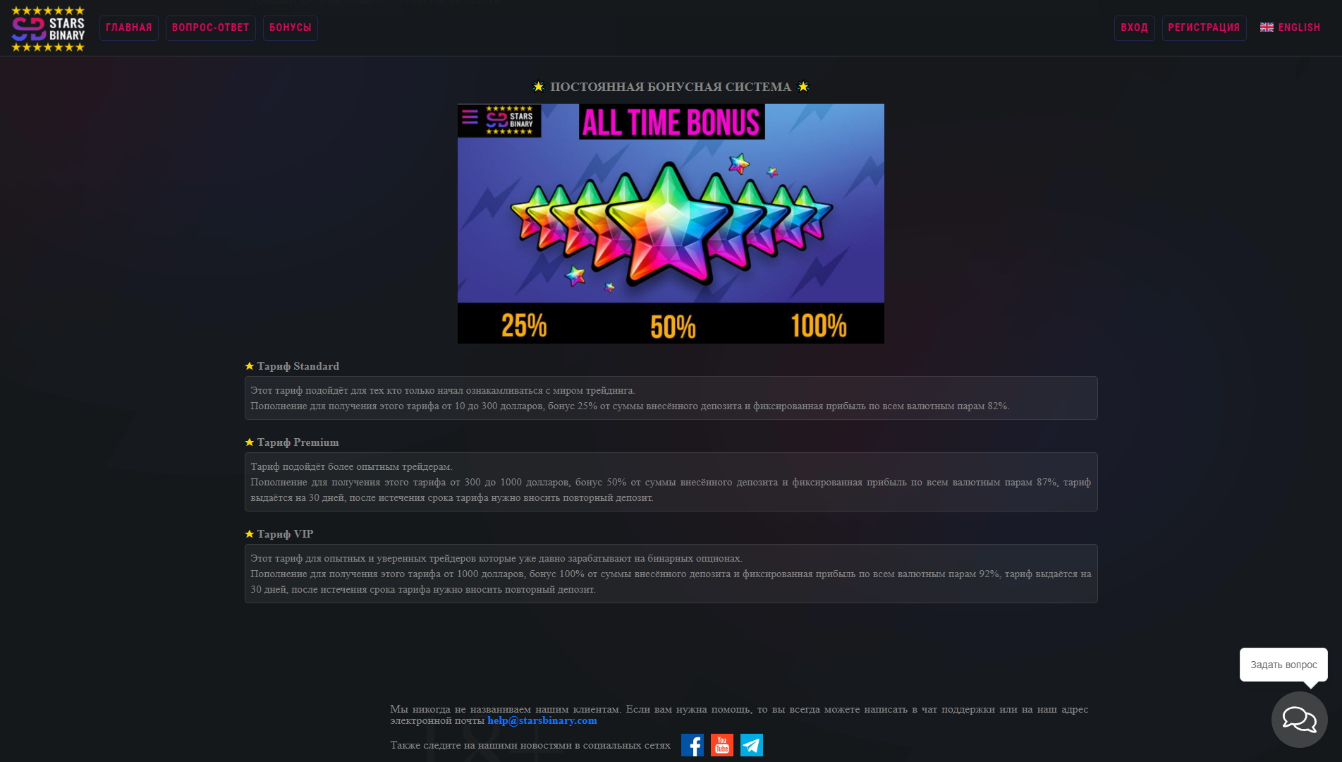 Какое отношение этот сайт имеет к брокеру Старсбинари, не понятно, возможно просто разработчики сайта StarsBinary com просто забыли сменить ссылку. Поэтому наш совет – проявлять осторожность, находясь на сайте брокера Старсбинари.