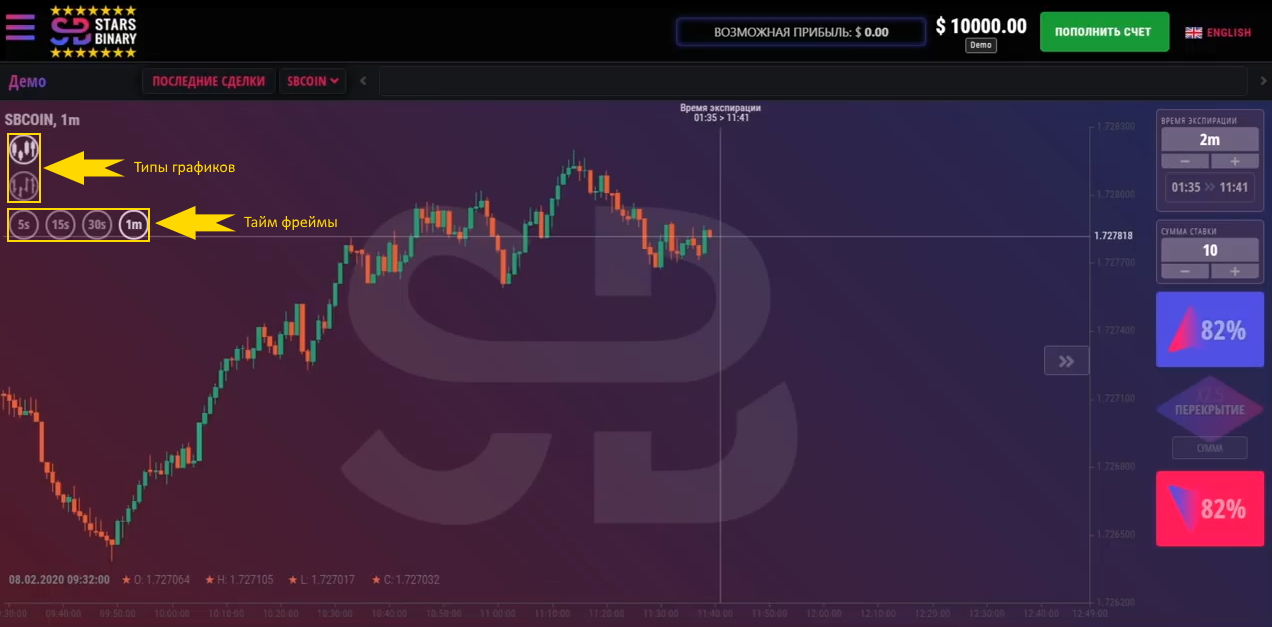 Важно отметить собственный торговый актив брокера Старсбинари – SBCoin. Так как данный актив является синтетическим, то проверить его котировки невозможно, а это значит, что для каждого трейдера он может быть разным и «разогнать» депозит при его помощи невозможно. И крайне не рекомендуется вести по нему торговлю, так как брокер намеренно будет делать так, чтобы вы «слили» депозит.